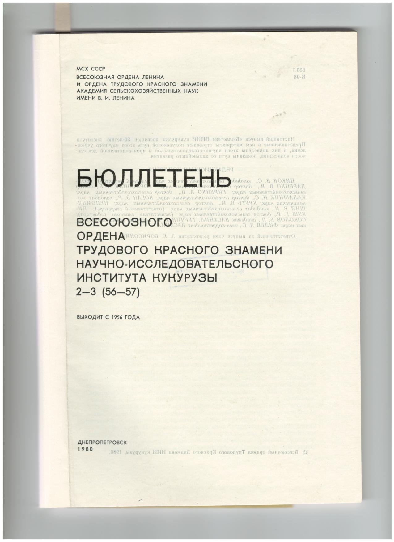 Писаренко В.Н., Сусидко П.И., Дудка Е.Л., Грисенко Г.В. Основные направления работ по защите растений от вредителей и болезней. Бюллетень ВНИИ кукурузы. 1980. №2-3. С.64-68.