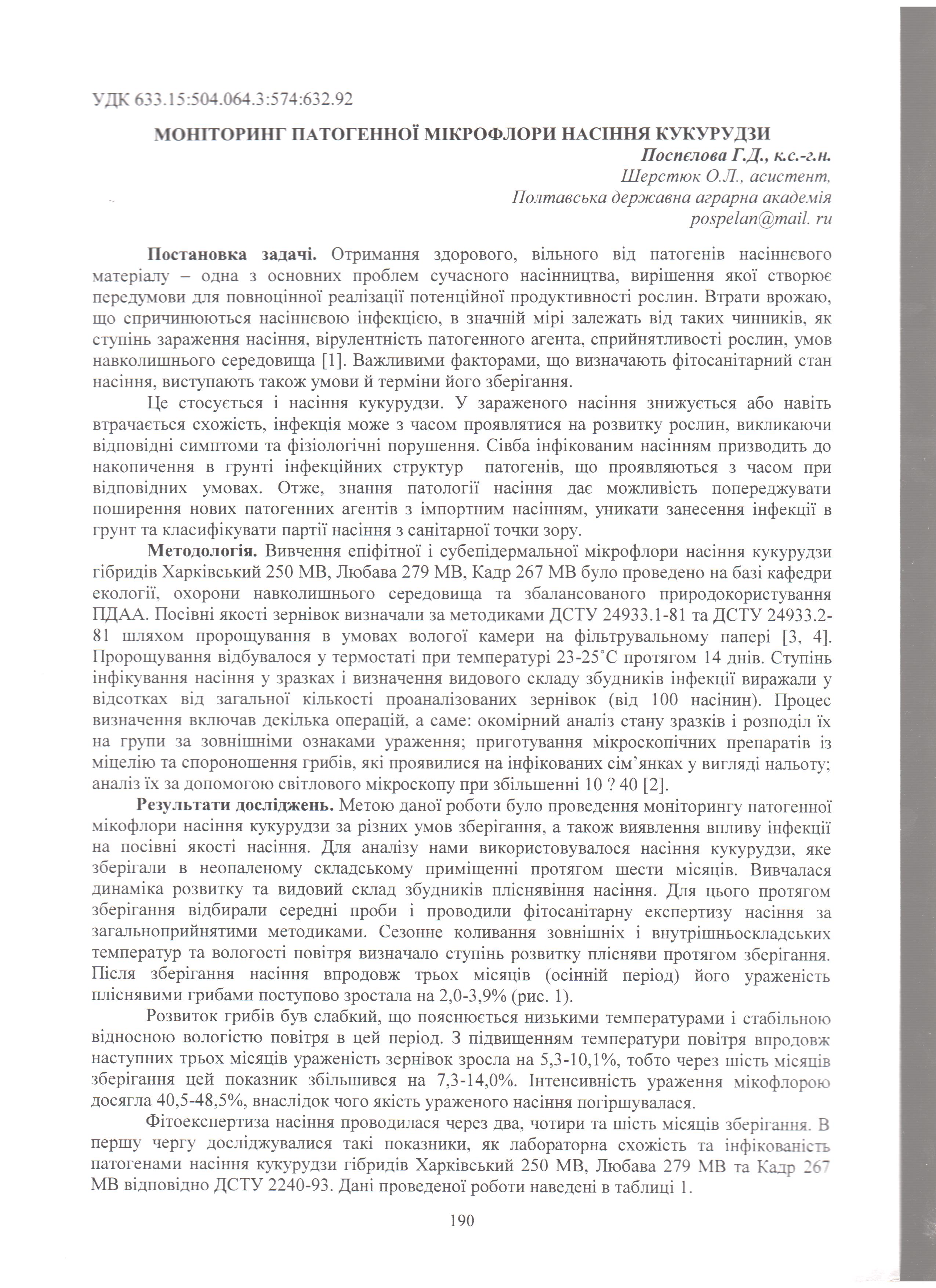 Моніторинг патогенної мікрофлори насіння кукурудзи