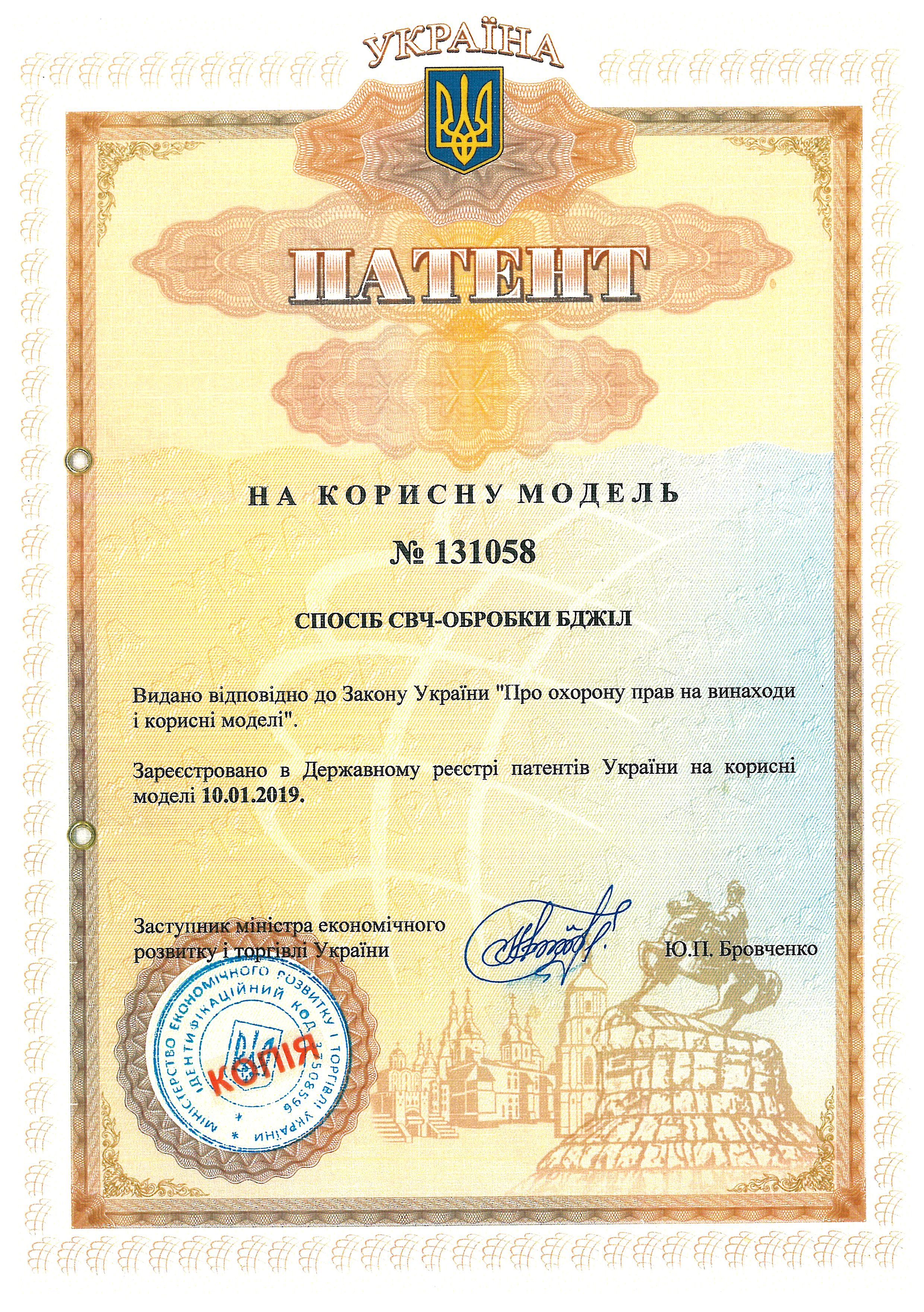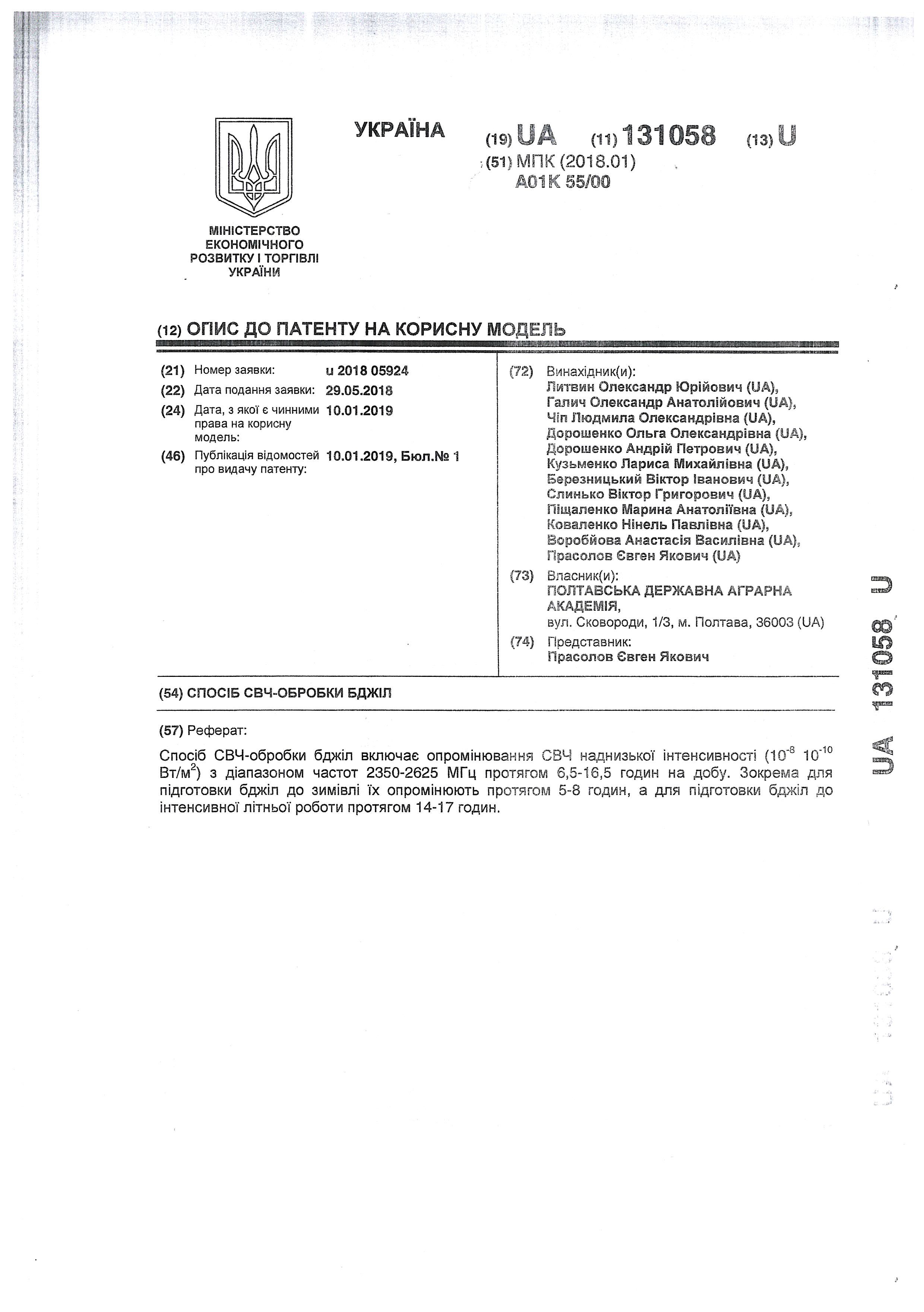 Патент на корисну модель №131058 Спосіб свч-обробки бджіл