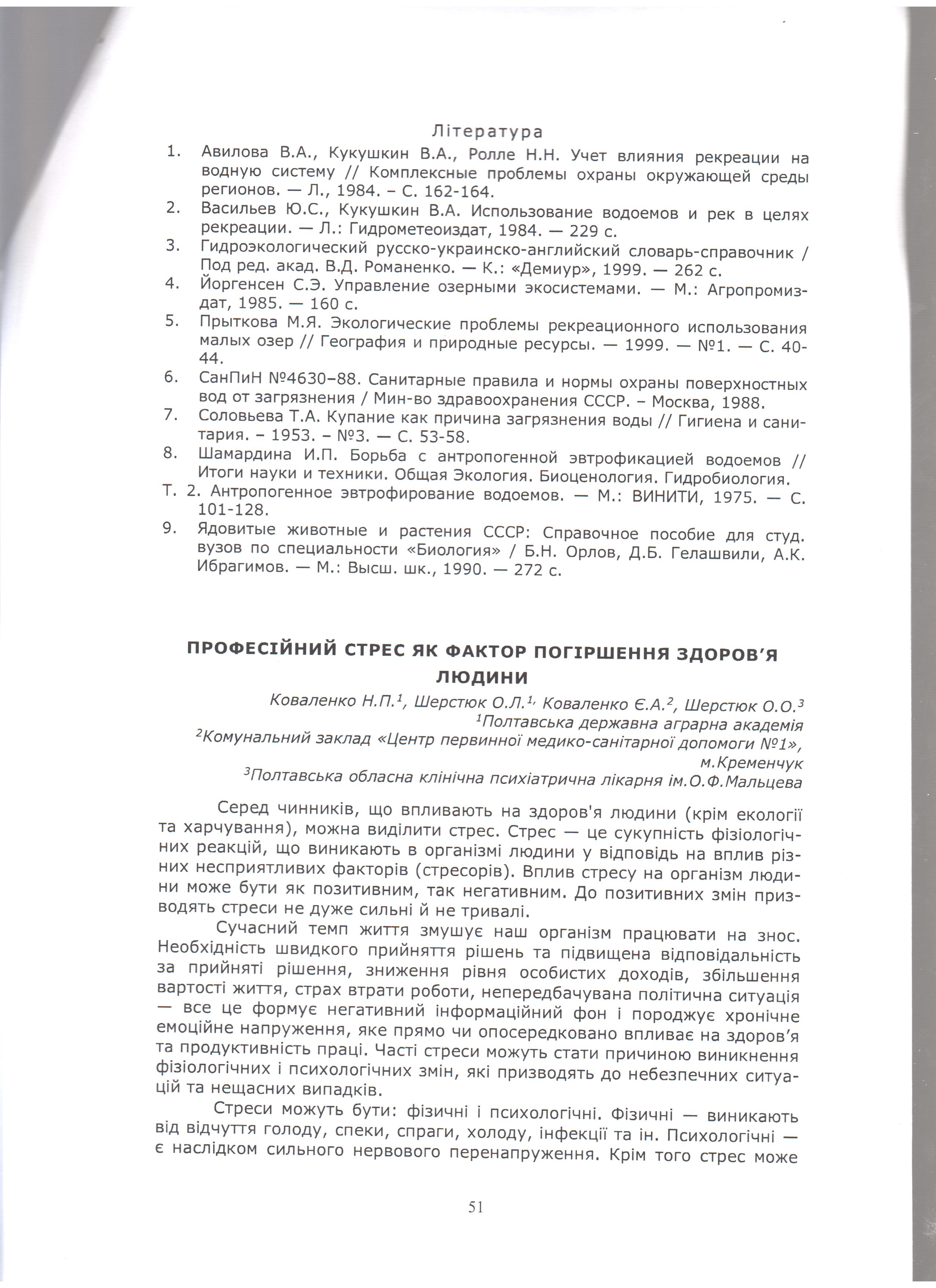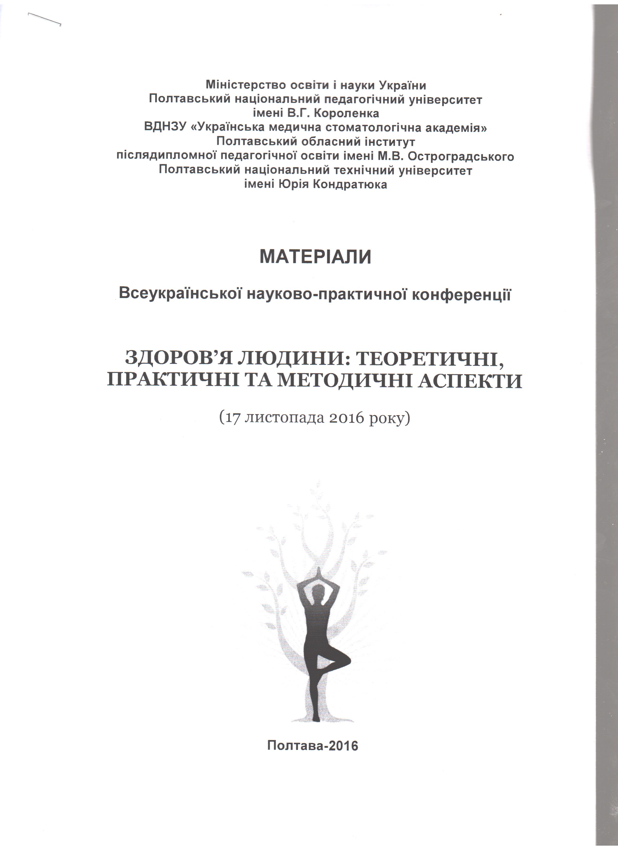Коваленко Н.П., Шерстюк О.Л., Коваленко Є.А., Шерстюк О.О. Професійний стрес як фактор погіршення здоров"я людини / Матеріали Всеукраїнської науково-практичної конференції "Здоров"я людини: теоретичні, практичні та методичні аспекти". - Полтава, 2016. -С.51-53.