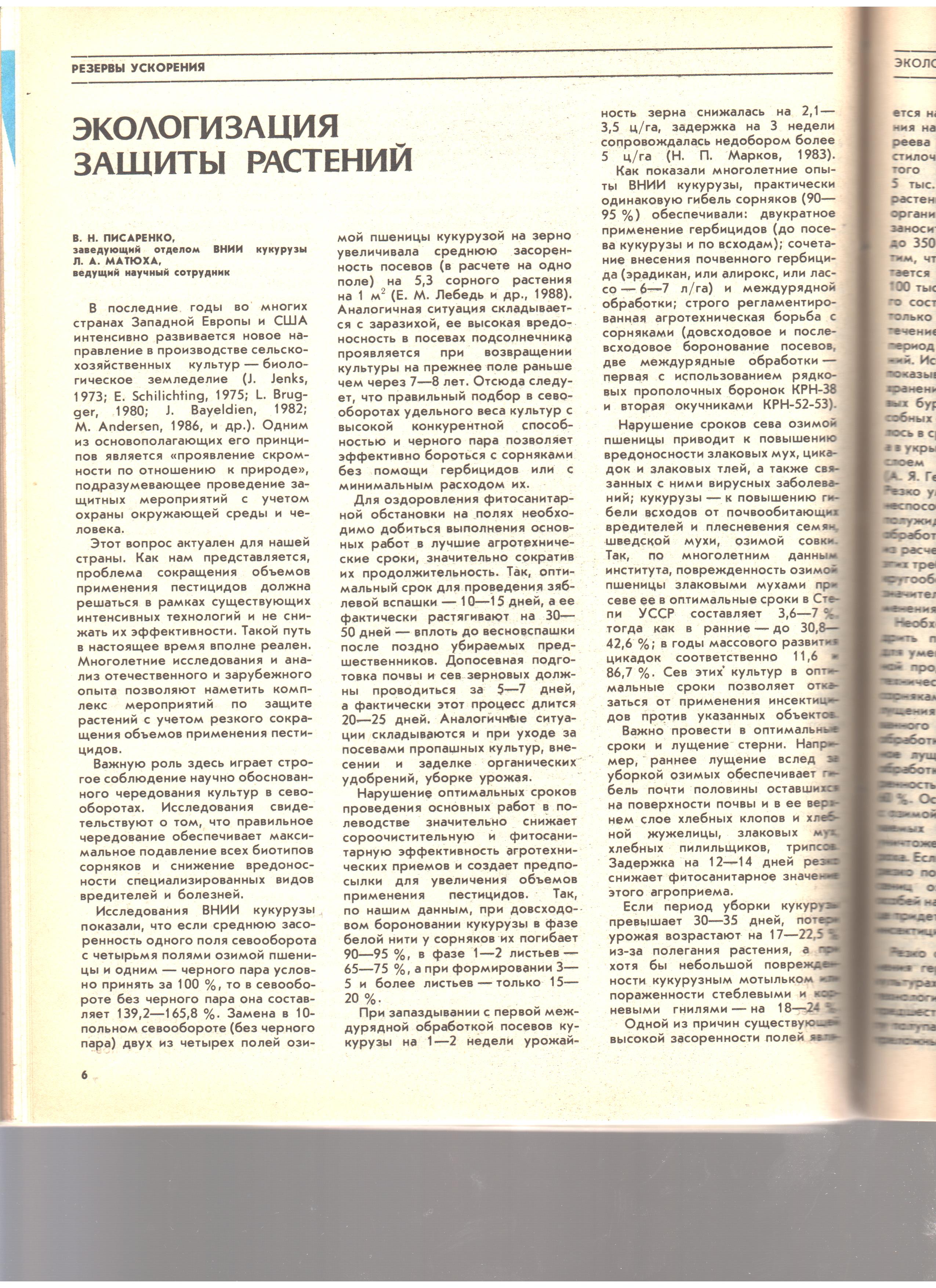 Писаренко В.Н., МАтюха Л.А. Экологизация защиты растений. Защита растений. 1989. №12. С. 6-10.