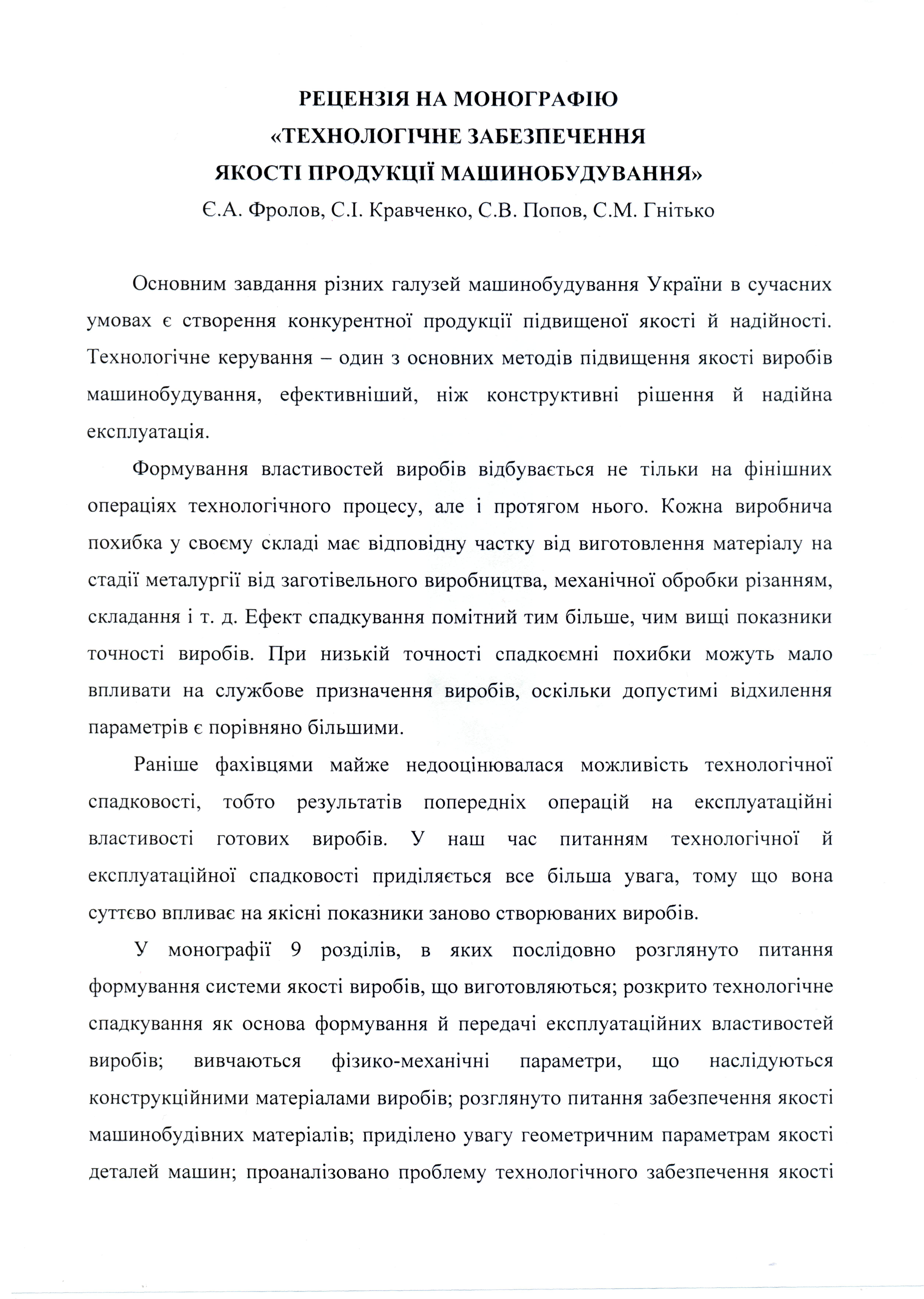 Технологічне забезпечення якості продукції машинобудування: монографія