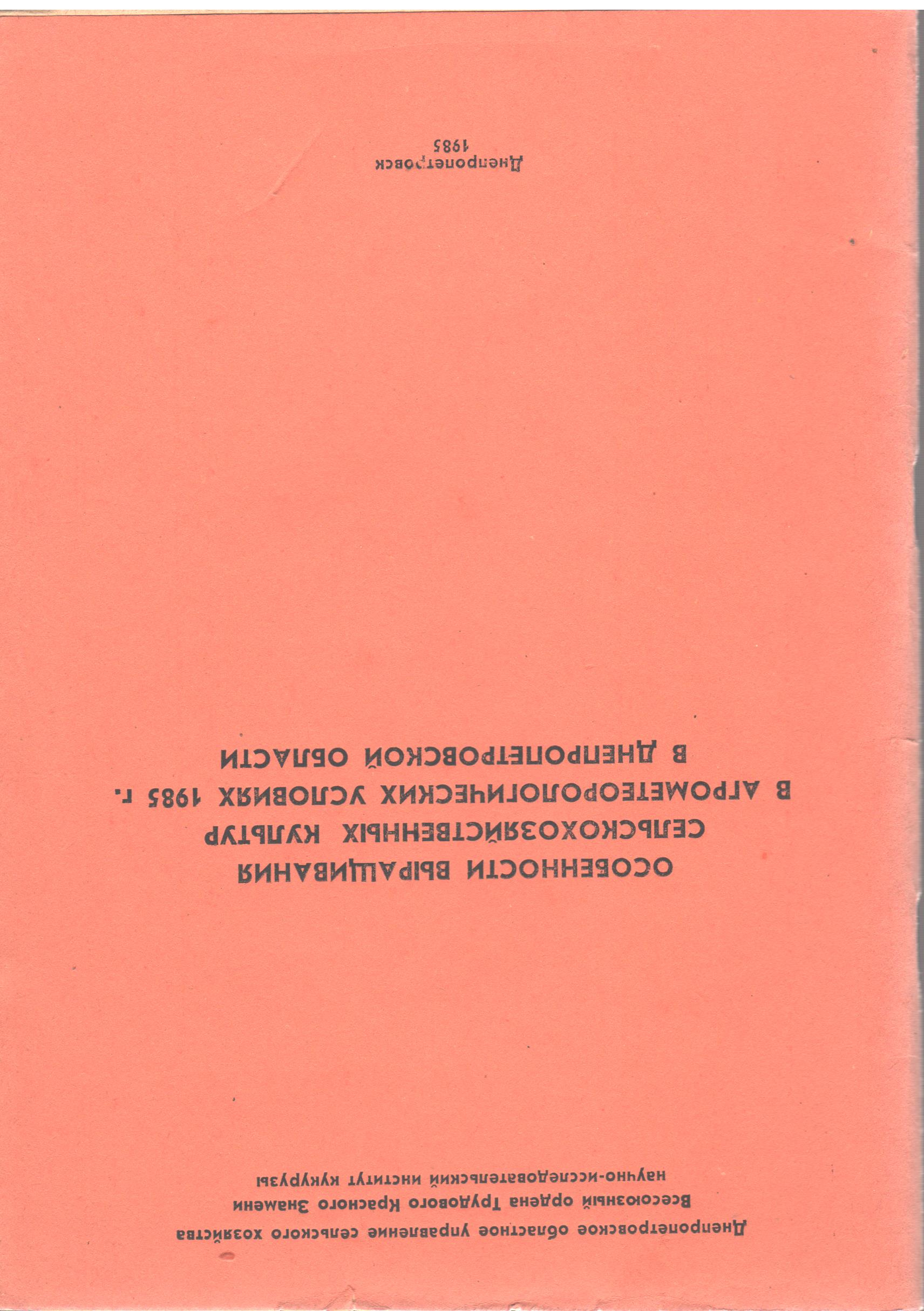 Особенности выращивания сельскохозяйственных культур в агрометеорологических условиях 1985 г. в Днепроптервоской области