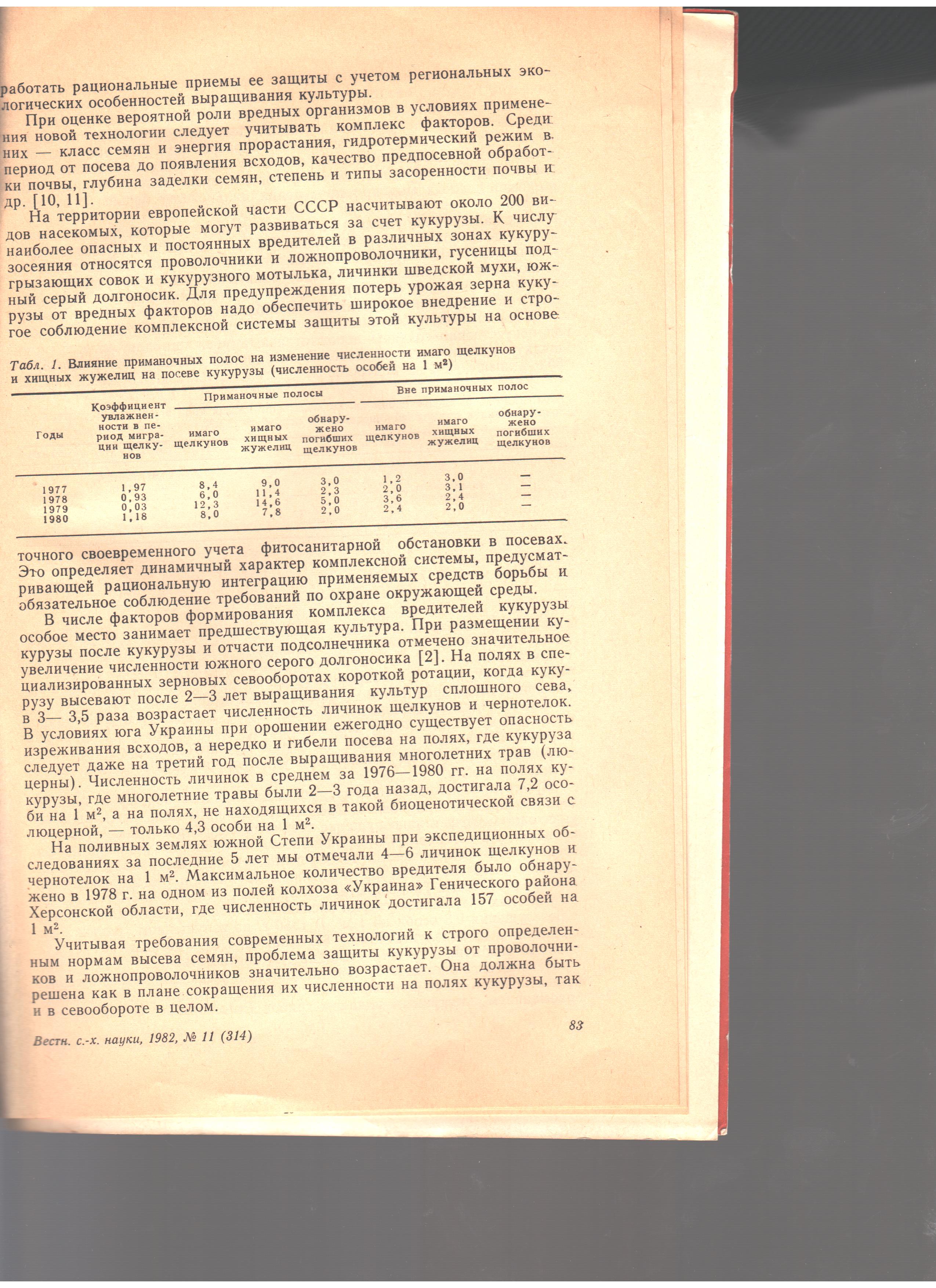 Снижение численности вредителей кукурузы в условиях прогрессивных технологий её возделывания