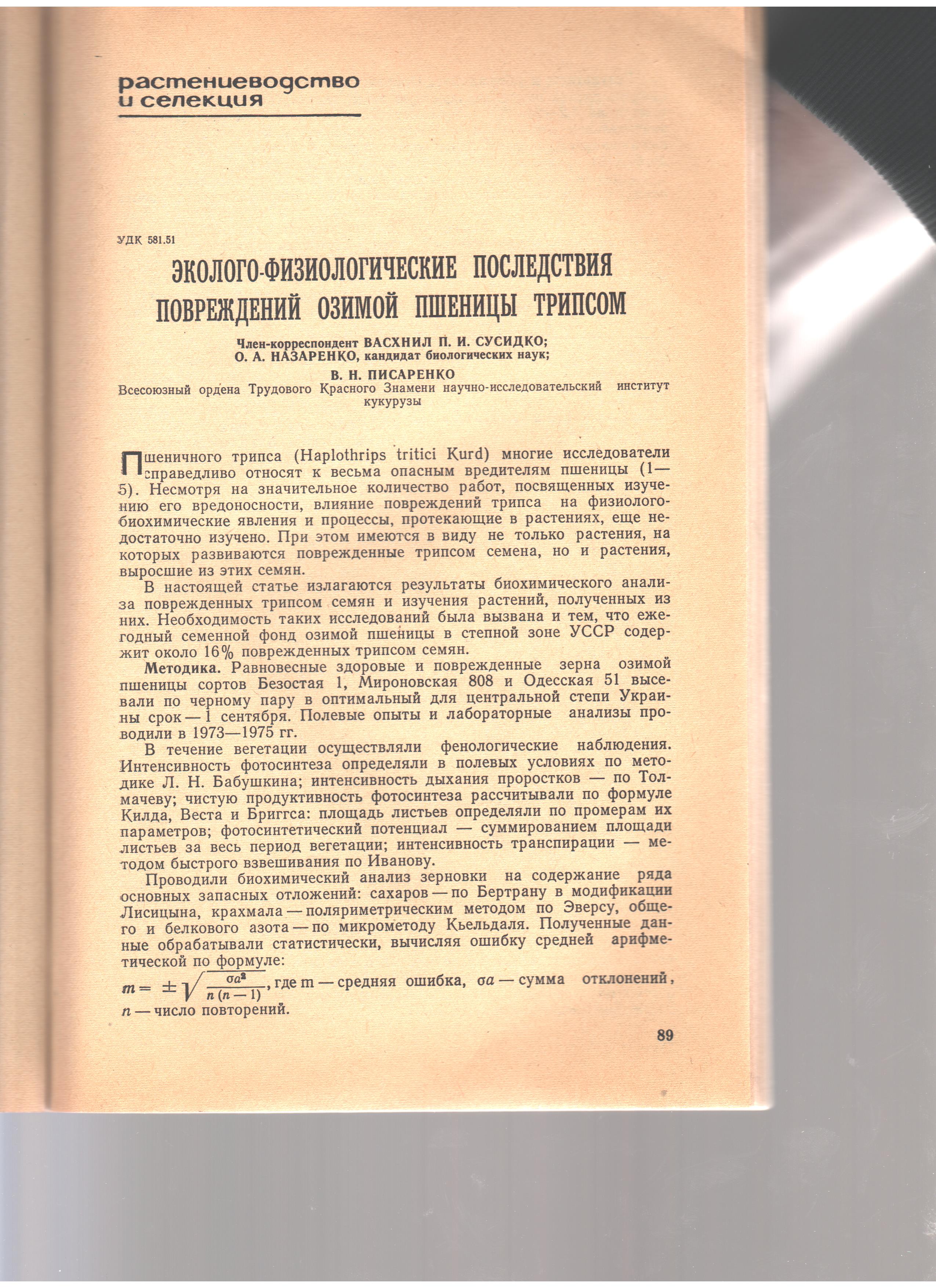 Писаренко В.Н., Сусидко П.И., Назаренко О.А. Эколого-физиологические последствия повреждения озимой пшеницы трипсом. Вестник сельскохозяйственной науки. 1977. №5. С.89-92.