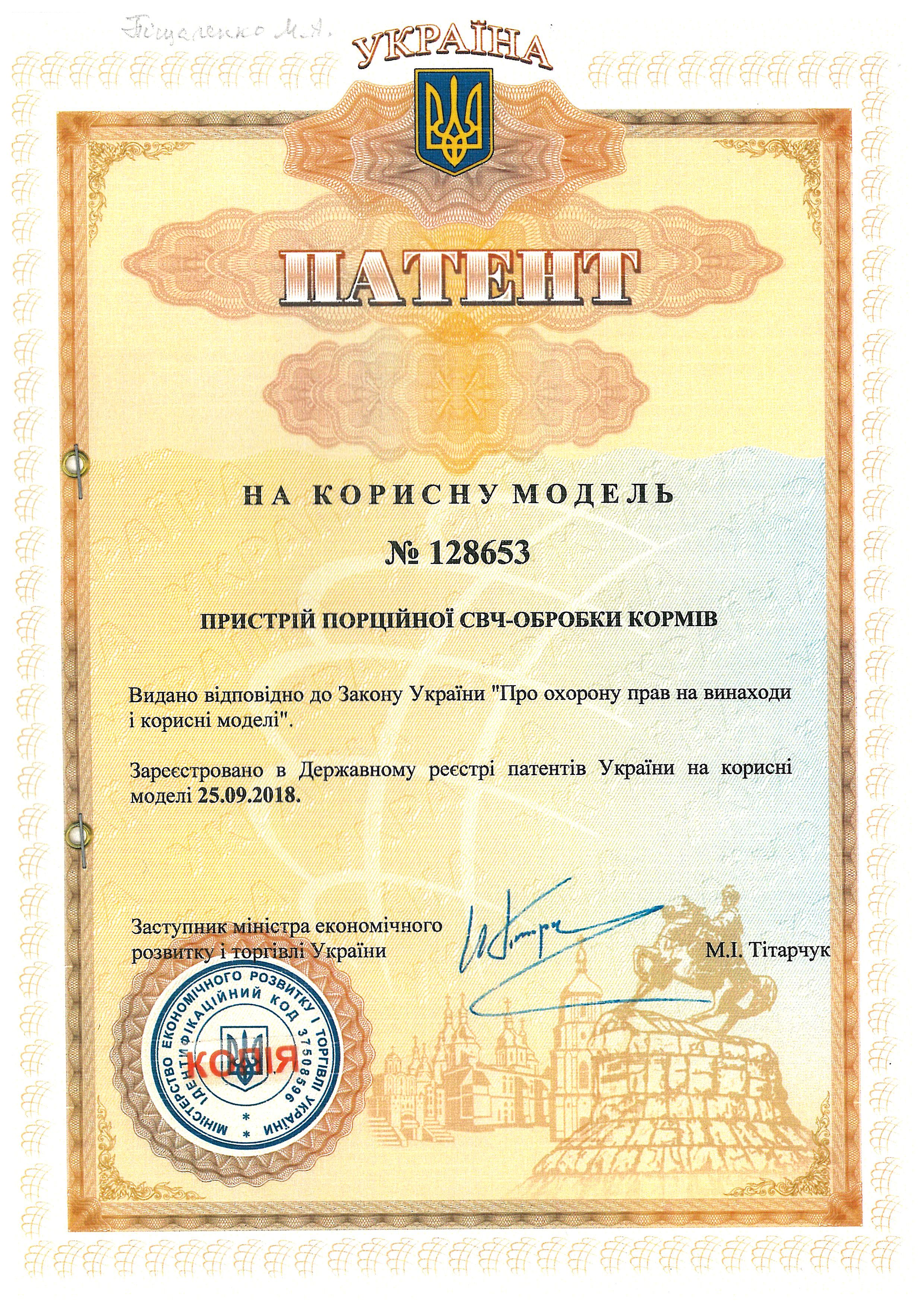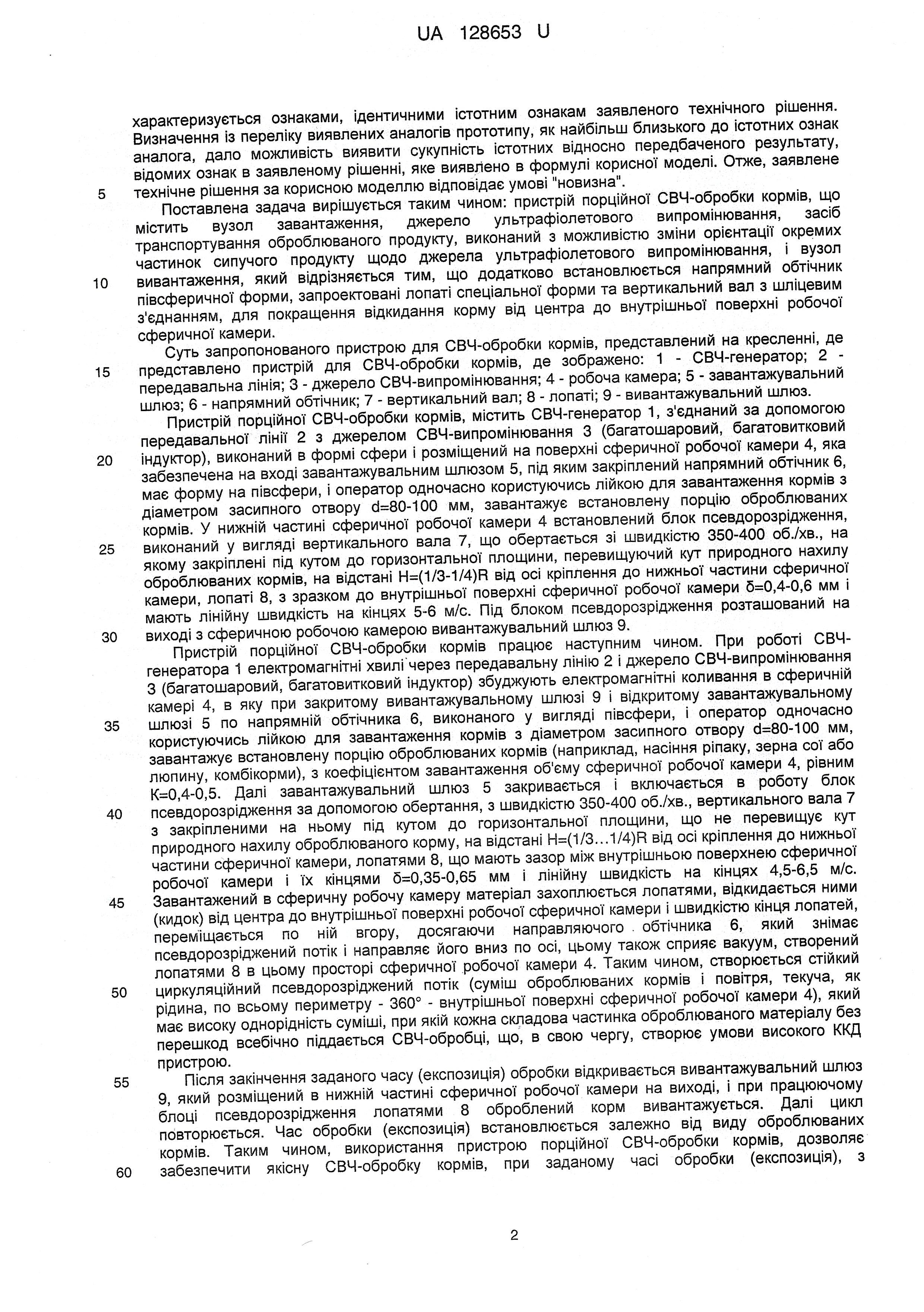 Патент на корисну модель № 128653 Пристрій порційної свч-обробки кормів