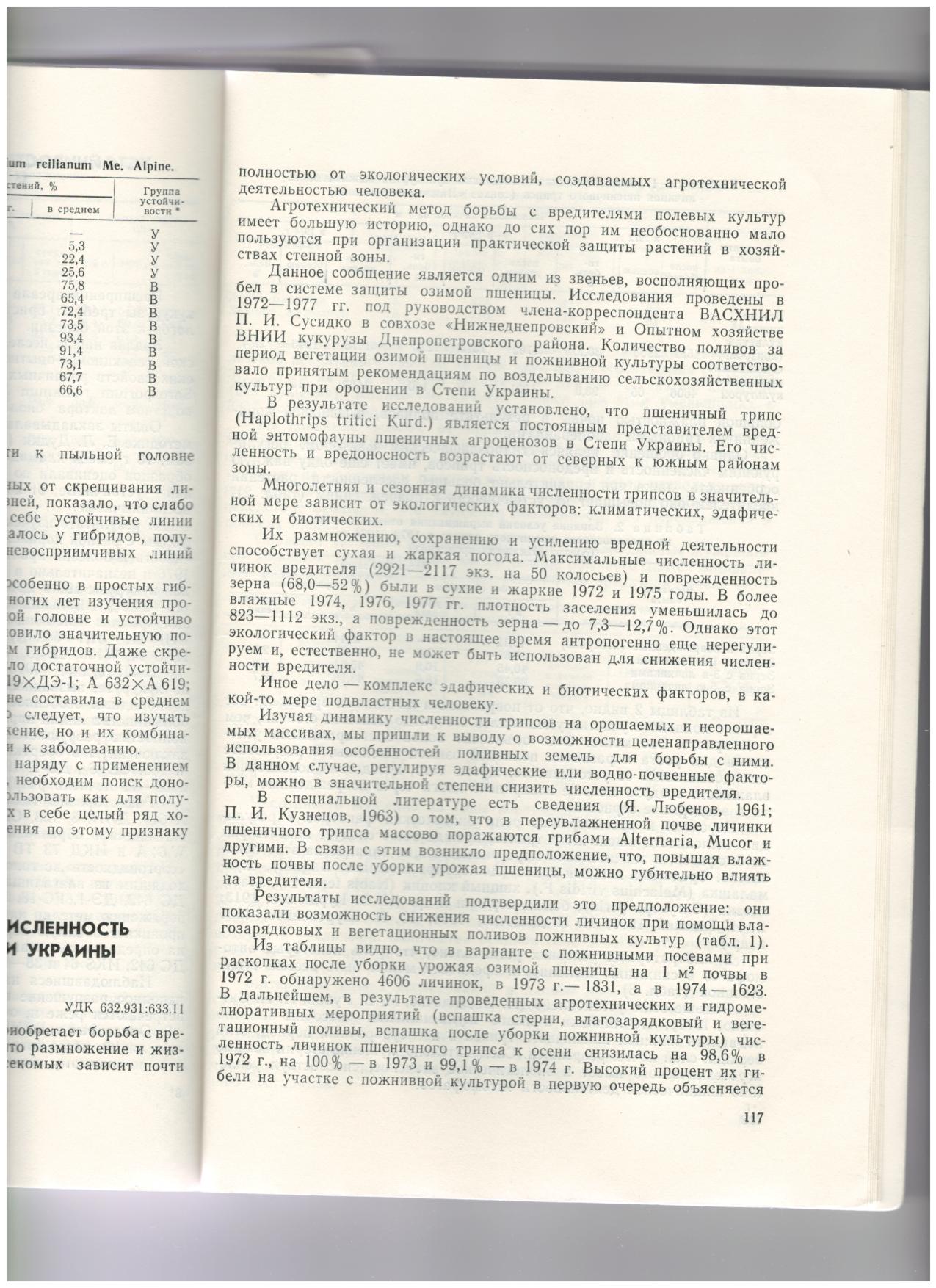Писаренко В.Н. Экологичекие факторы и численость пшеничного трипса в степи Украины. Бюллетень ВНИИ кукурузы. 1979. №2-3. С.116-119.