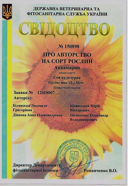 Авторське свідоцтво, Соя Аквамарин