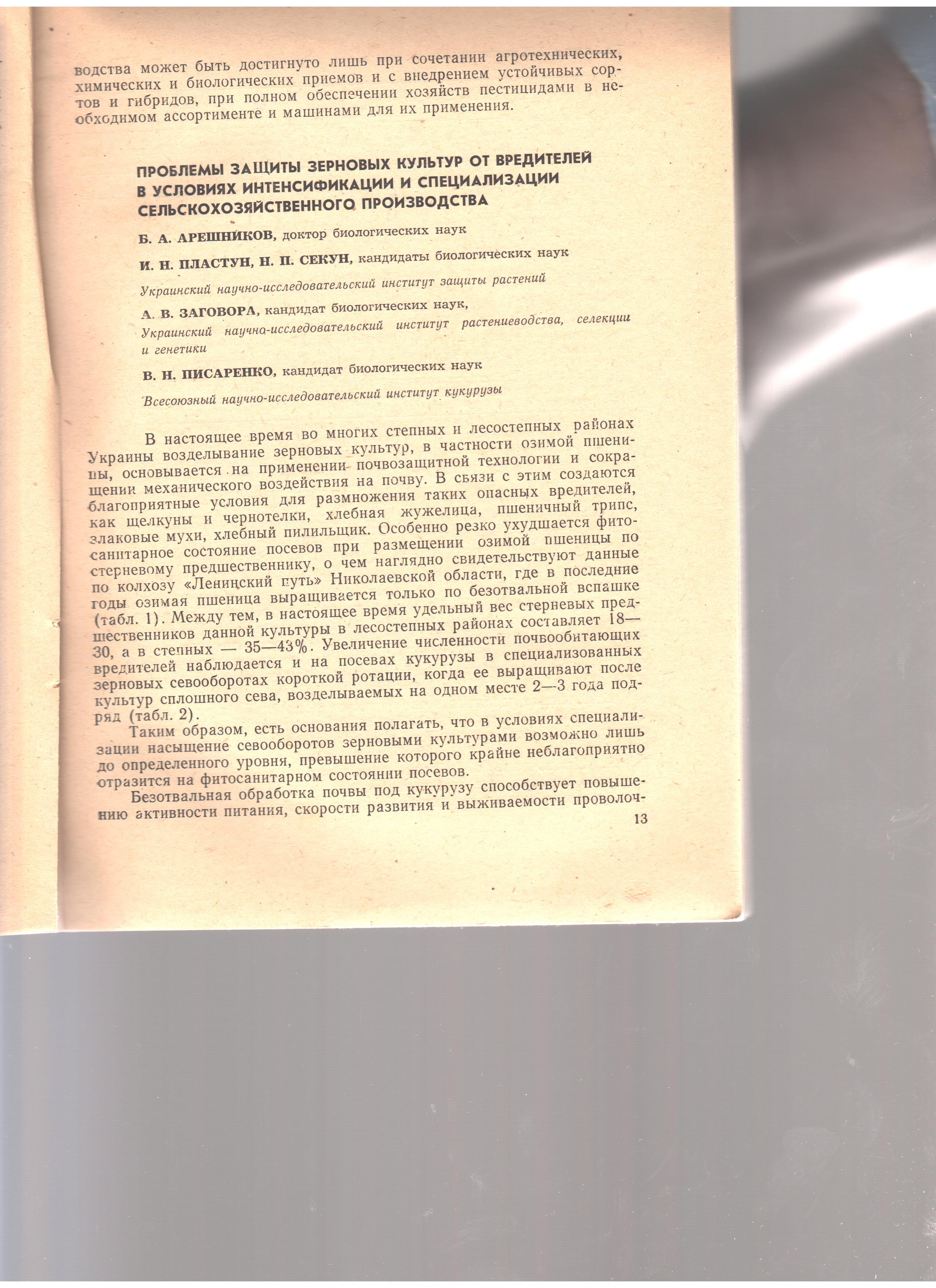 Проблемы защиты зерновых культур от вредителей в условиях интенсификации и специализации сельскохозяйственного производства